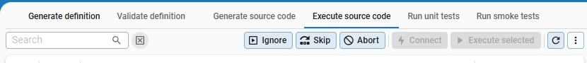 On generate defintion you get the option to ignore all errors. Bon the execute source code you can only ignore 1 error. I already know the problem I just want to create the rest and continue debugging. But there is no option to ignore all errors on this screen. Please add that option here as well.