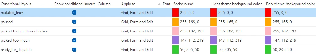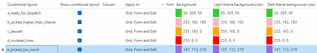 I’d like to apply an order of priority to the conditional layouts, so that I can define red as the more important status, forcing it to choose red over orange when both apply.