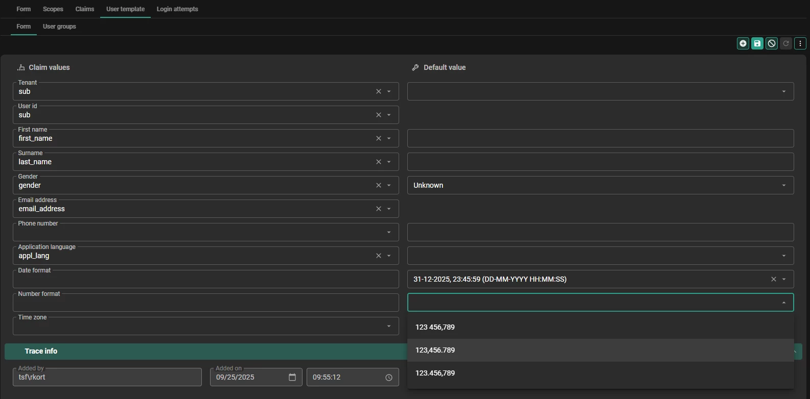 The date and number formats can be set per Open ID Provider User Template. For all users provisioned through OpenID these default settings will be applied.