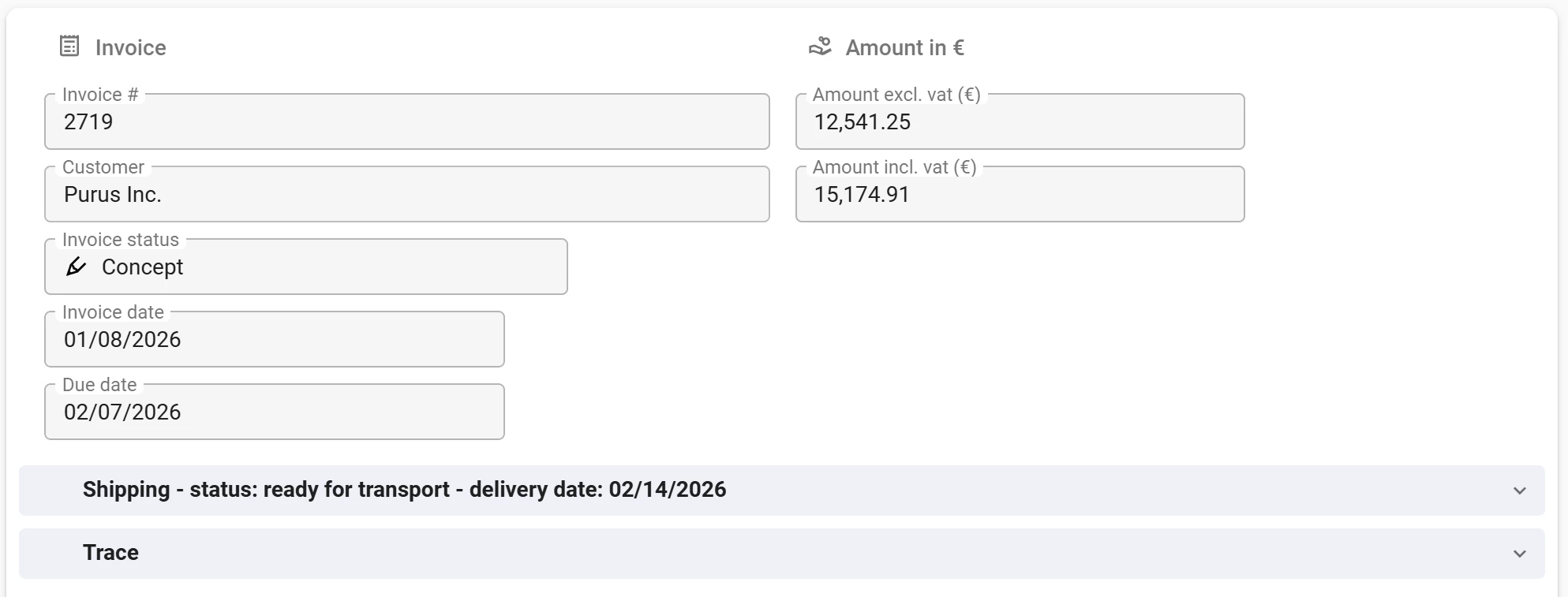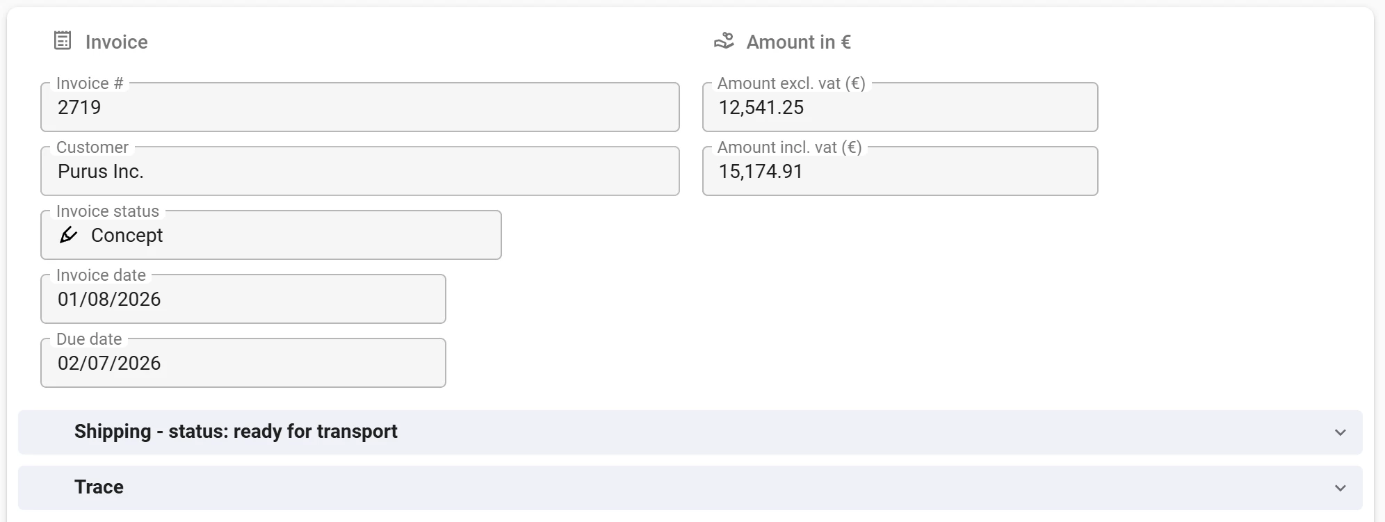 Order management screens often contain a shipping section packed with tracking details. By adding the shipping status to the section header, your users get an instant overview without any extra clicks. The translation Shipping – status: {shipping_status} shows the current state directly. Need more detail? Just expand the section. It keeps the interface clean and focused.