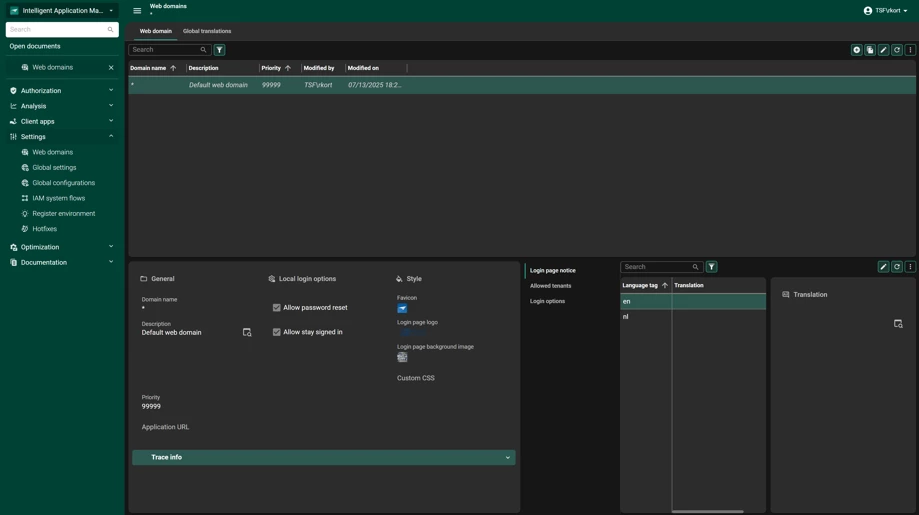 You can now customize the login environment based on the domain using Web domains. Configuration is managed in IAM under Settings → Web domains, where you define domain-specific branding, login providers, and other login-related settings.