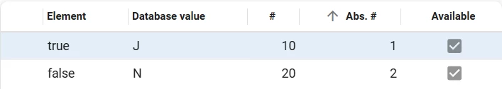 - One Element with the name 'false'. The Database value should correspond to an unchecked checkbox, for example 'N' or 'F'