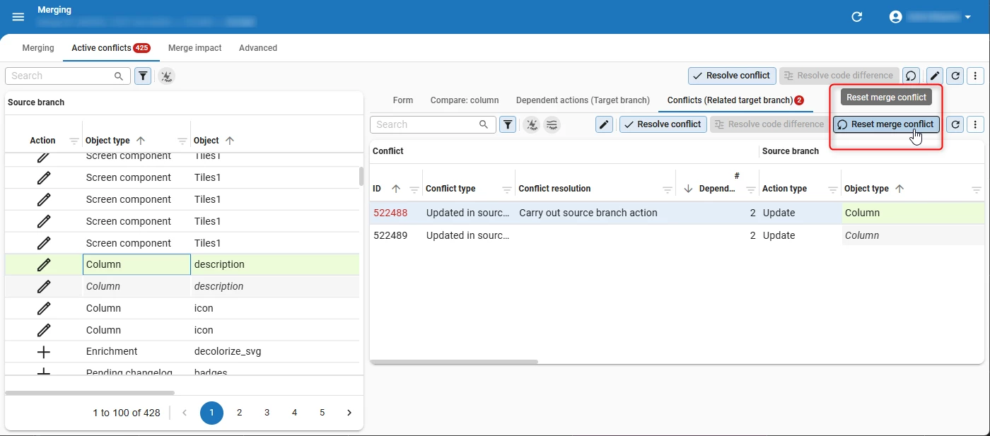 To improve this process, we have added the task Reset merge conflict in the menu Models > Merging > tab Active conflicts.