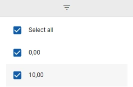 We introduced the ability to filter columns using the column header in the Universal GUI 2025.2.13 release. This functionality has been extended to include numeric data types (for example, Integer, Decimal, Float). The list of items is limited to 25 by default to optimize performance and usability. When the number of unique values exceeds 25, the list of checked items is replaced with a dropdown list with a search function. You can change these settings by using the extended property LookupGridHeaderFilterOptionsLimit.
