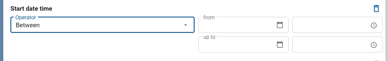 We have updated the alignment of the field Operator when it contains Between with the value fields From and Up to in the Filter pop-up. The operator and value fields are now aligned vertically to improve readability.