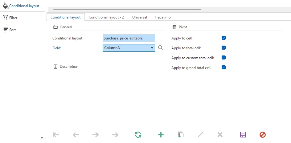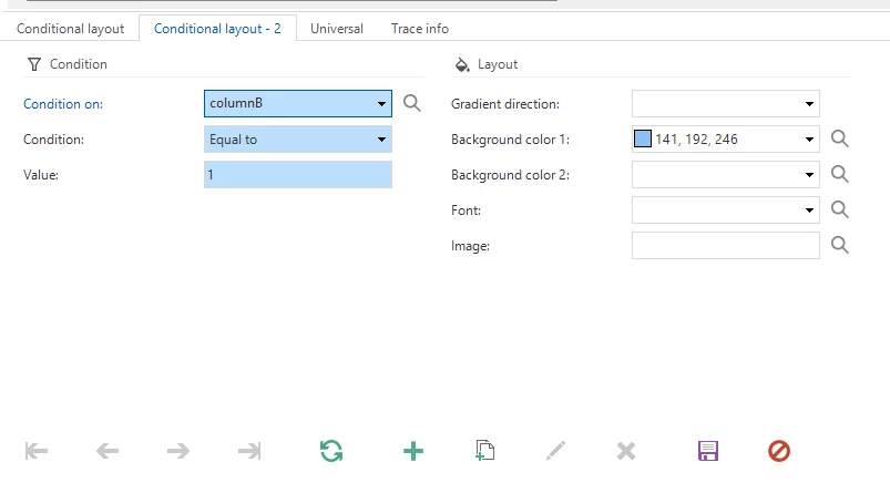 I want to set a conditional layout on a cube for column A based on a condition on column B, but it is not working, unless I set it on the same column (conditional layout on column A with condition on column A).