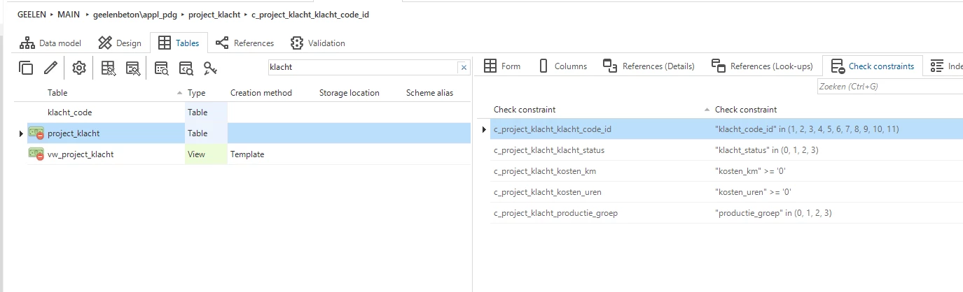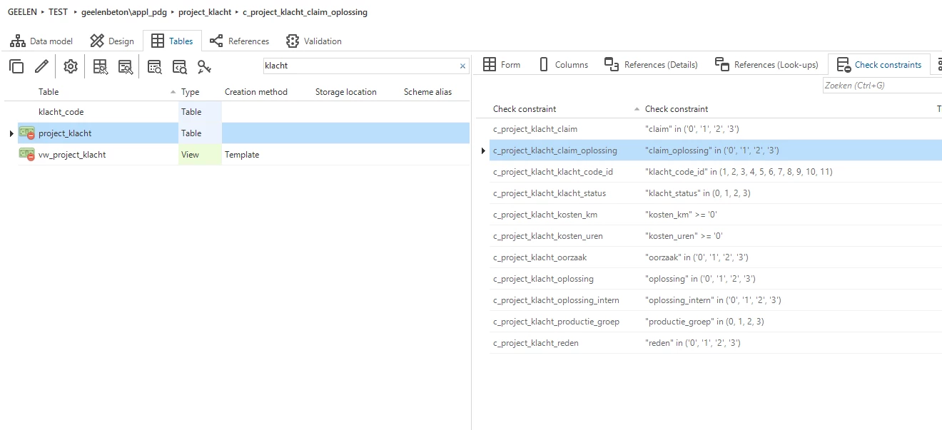 These check constraints are automatically generated by the SF (via a meta CP originating from a Thinkwise base model), based on two characteristics of a domain: