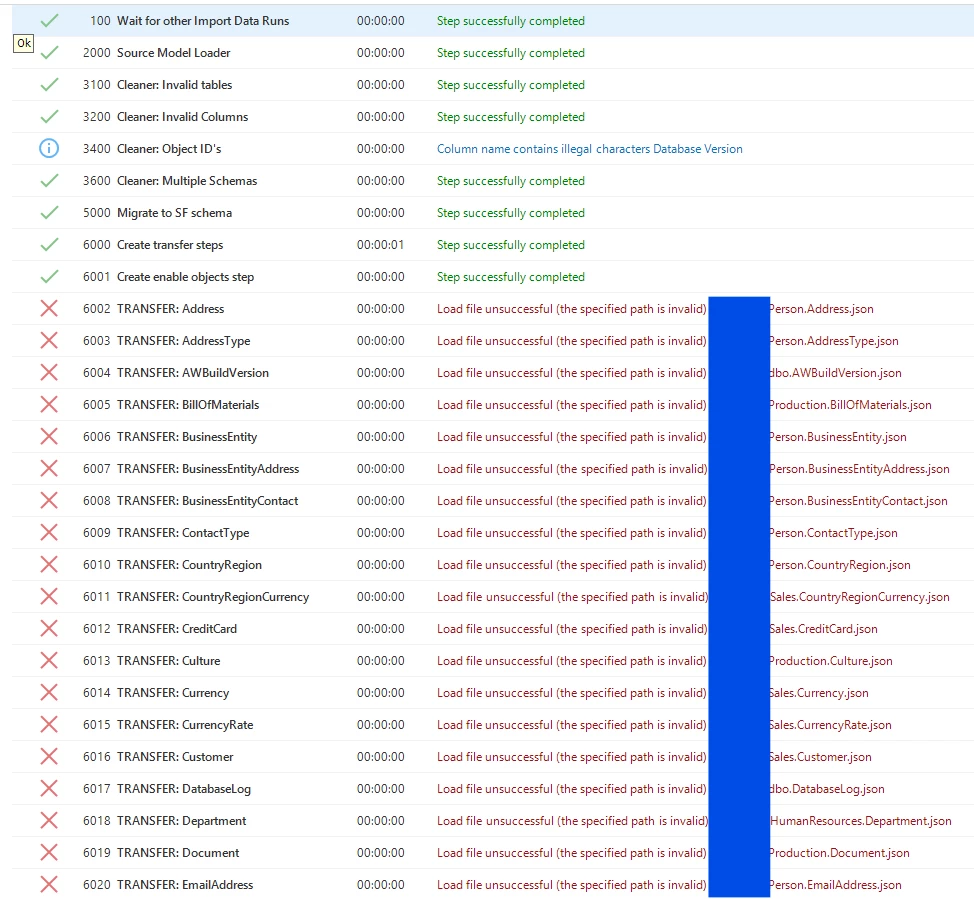 During the Data Import Run, I get stuck at the ‘Create Transfer Steps’ step.