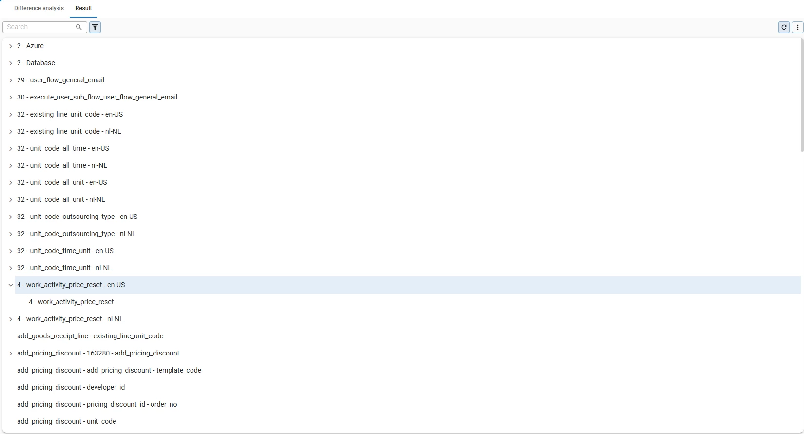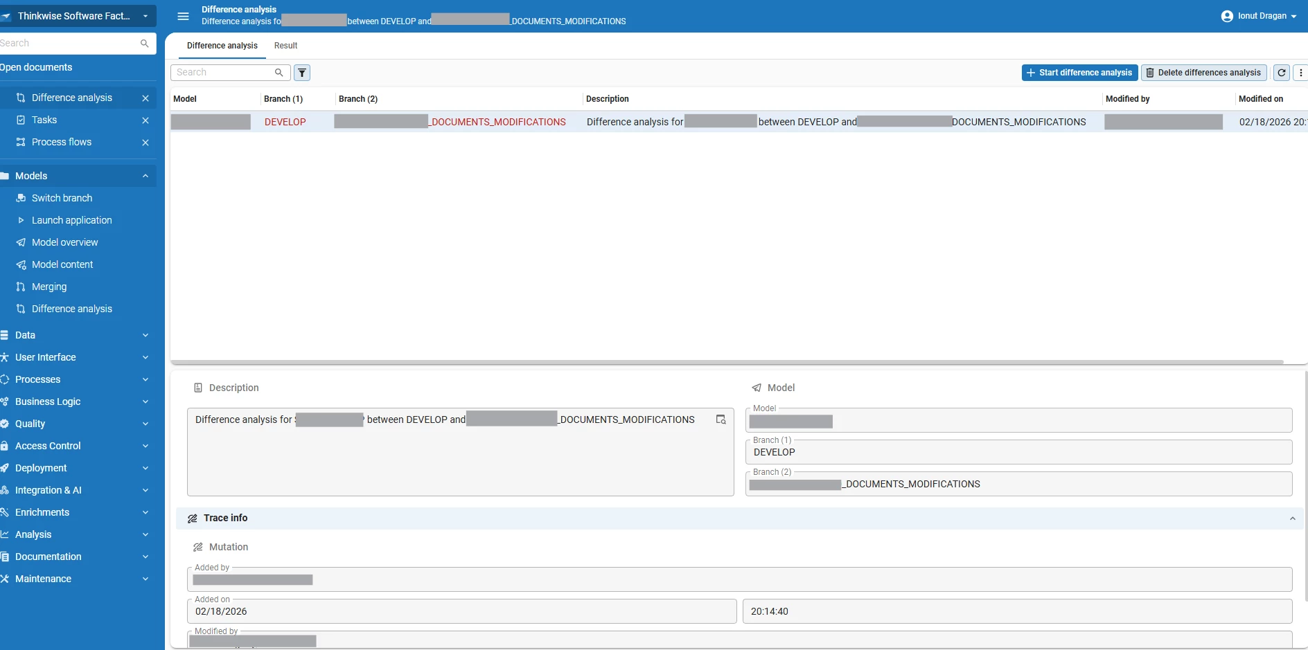 As a workaround, you could also start a regular merge session (https://docs.thinkwisesoftware.com/docs/sf/merging) to see the differences between two branches.