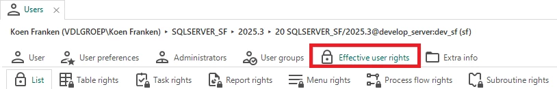Since these changes, key users can no longer access the “Effective user rights” table. This table is very useful for them because it provides a clear overview of what permissions users effectively have.