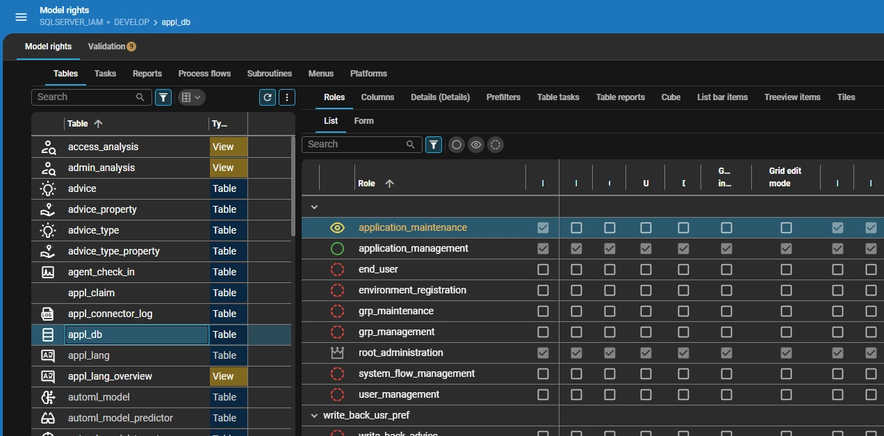 It would be convenient if in the Software Factory I could select a table and access type (hidden/read/edit, available) and then get a list of all roles that have the specified access on the active branch.