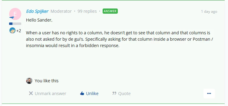 To follow up on this (the comments): I have one more question. I am configuring a layout and I am checking whether a certain field has the value '1’. If this is the case, then it should show some task fields. But when the user has no rights on this field, and the task popup shows, shouldn't it hide the task fields in question, because that field without rights has no value anymore?