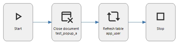 The process flow is a test, so I have the “Close Document” and an item to attempt a refresh of a table, though this last one is not relevant to the question.