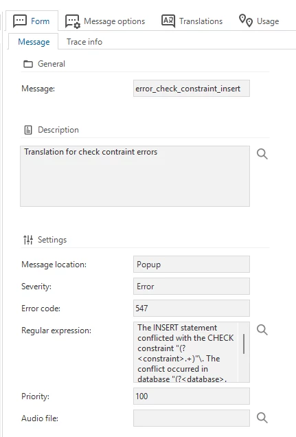 How can I add a Database message as explained here?: https://docs.thinkwisesoftware.com/docs/sf/messages#database-messages