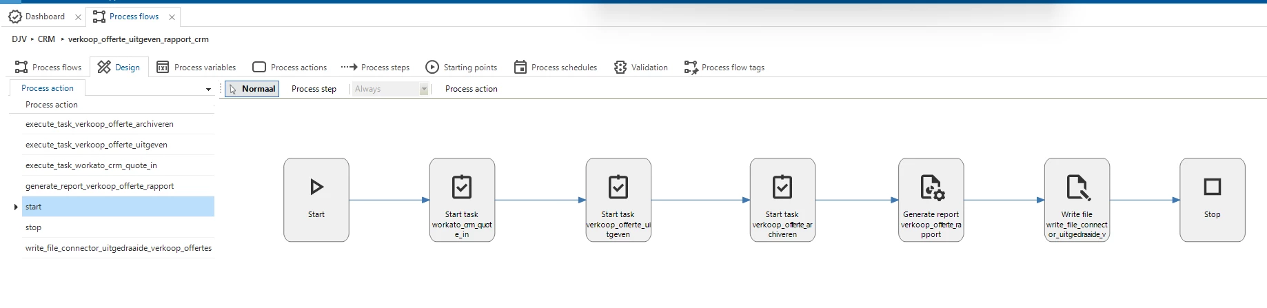 I have a task that is the start of a simple process flow, which starts some more tasks and writes a report.