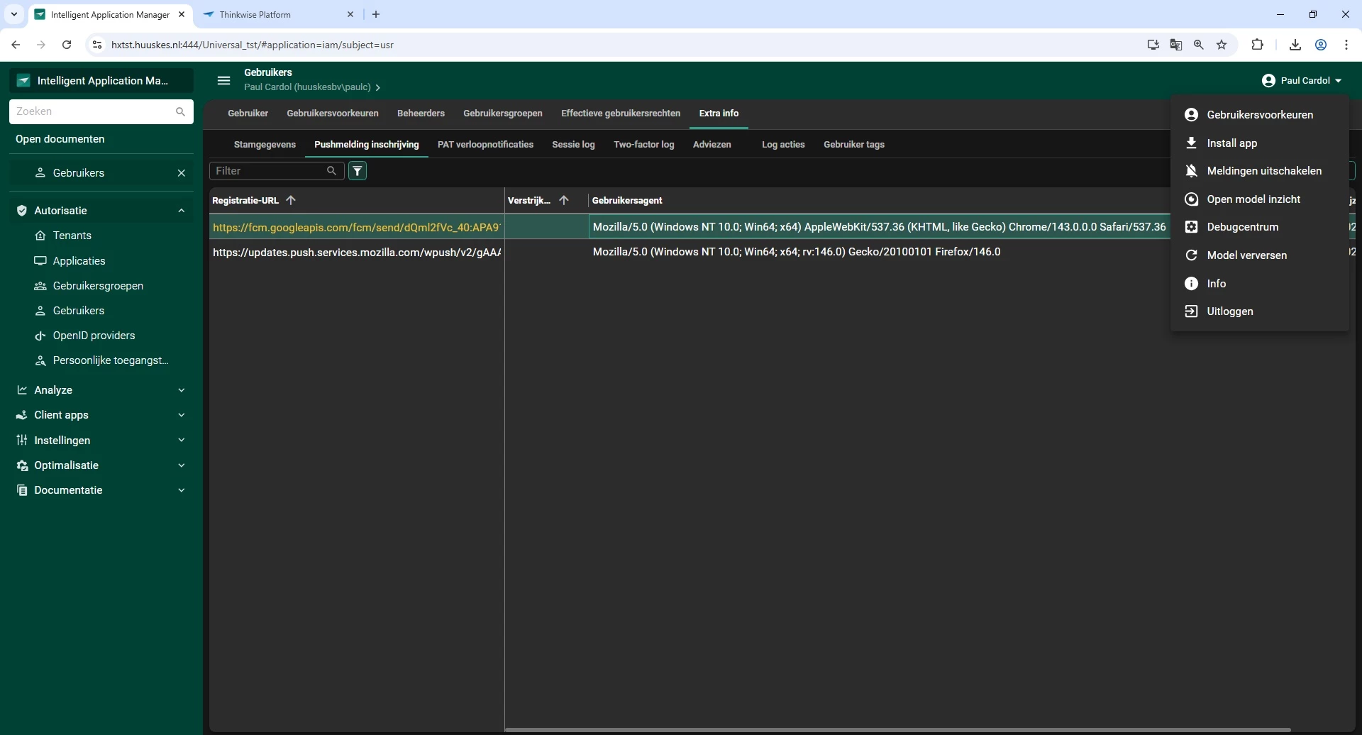 Are there any Chromium-specific requirements, permissions, certificates, or service worker limitations that we might be overlooking when using push notifications in a Thinkwise application?