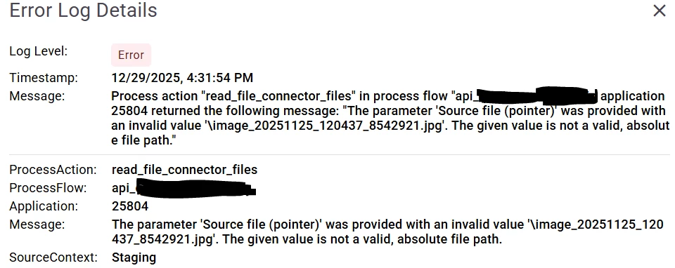 For a process I want to send files from a file path into base64 format to an external webservice. For this purpose i used the read file connector inside a process flow. However the setup i seem to fail at getting the setting right.