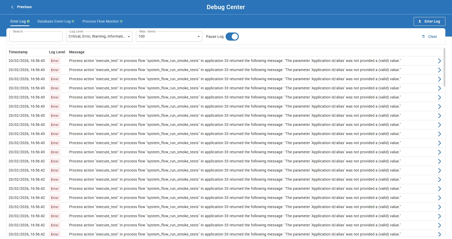 Basically we are spammed with logs that it is failing because 'Application id/alias' was not provided.