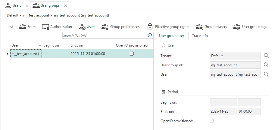 If i fill in the end dates in the user group of which the user is a member of then the user has no access to the application. I expected the end date on user level would be the primary end date. Am i mistaken about what the end date of a user does?